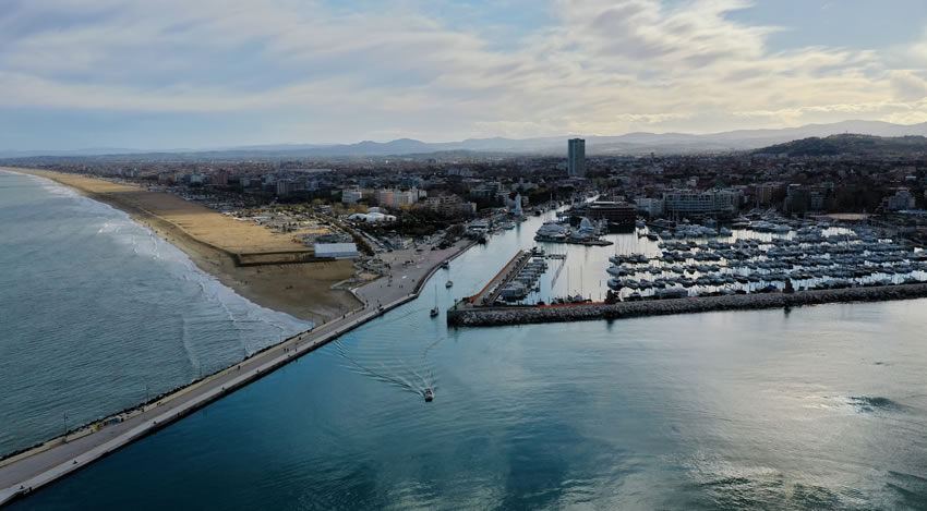La città di Rimini, insieme a Cattolica e Riccione, Viserba e Viserbella, sono il cuore della movida romagnola. L'area del Parco Fellini accanto al Grand Hotel è il cuore della Rimini balneare: qui è sorto il primo stabilimento balneare e dall'alba al tramonto, a tutte le ore, le splendide spiagge regala la voglia di un tuffo nel mare e uno splendido panorama punteggiato dai mille colori dei bagni che hanno reso famosa la riviera romagnola.